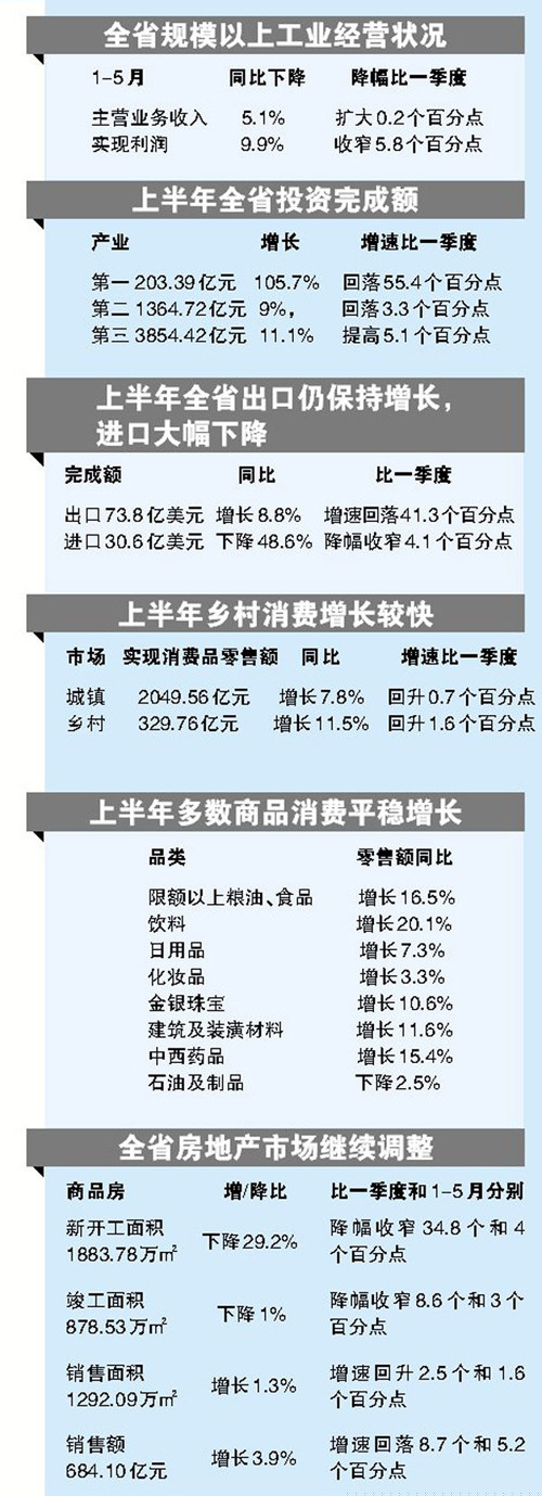 發(fā)布會(huì)上,統(tǒng)計(jì)局相關(guān)負(fù)責(zé)人表示,今年上半年,全省經(jīng)濟(jì)運(yùn)行經(jīng)歷了一季度的低迷后,在各項(xiàng)穩(wěn)增長政策的有力作用下,各項(xiàng)經(jīng)濟(jì)指標(biāo)從二季度開始回歸到平穩(wěn)增長的軌道,并呈現(xiàn)企穩(wěn)回升向好的積極態(tài)勢。但穩(wěn)增長壓力依然較大,經(jīng)濟(jì)回升的基礎(chǔ)仍有待夯實(shí)。隨著狠抓穩(wěn)增長、促改革、調(diào)結(jié)構(gòu)、惠民生、防風(fēng)險(xiǎn)政策措施的落實(shí)到位,第三季度將進(jìn)一步鞏固經(jīng)濟(jì)運(yùn)行回升向好的勢頭,第四季度向著全年預(yù)期發(fā)展目標(biāo)攻堅(jiān)沖刺,努力實(shí)現(xiàn)各項(xiàng)目標(biāo)任務(wù)。